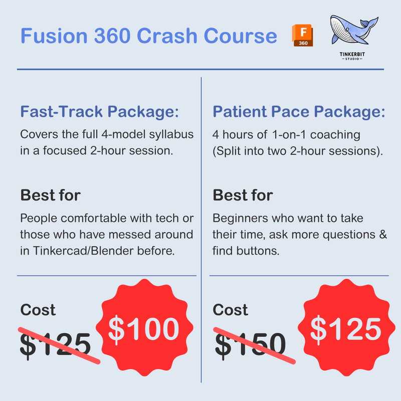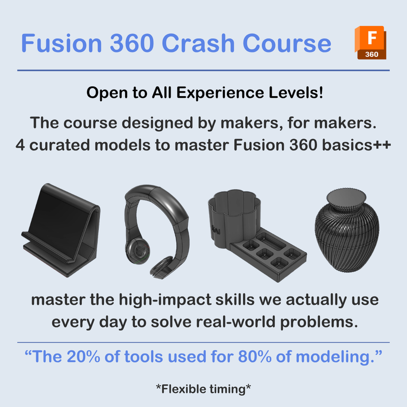 Have a 3D printer but stuck downloading other people's designs? Or are you just interested in 3D modeling? Invest in yourself by turning a hobby into a lifelong skill. TinkerBit Studio presents a curated Fusion 360 Crash Course designed to take you from "Zero" to "Designer" in record time.