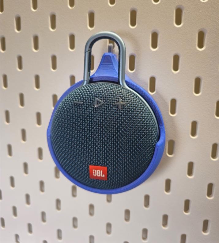 Free up space on your workspace or in your room using TinkerBit's Speaker Holder, compatible with Google Home mini and other small round speakers. Design allows for cable routing through the bottom and attaches using the TinkerHook Universal.
